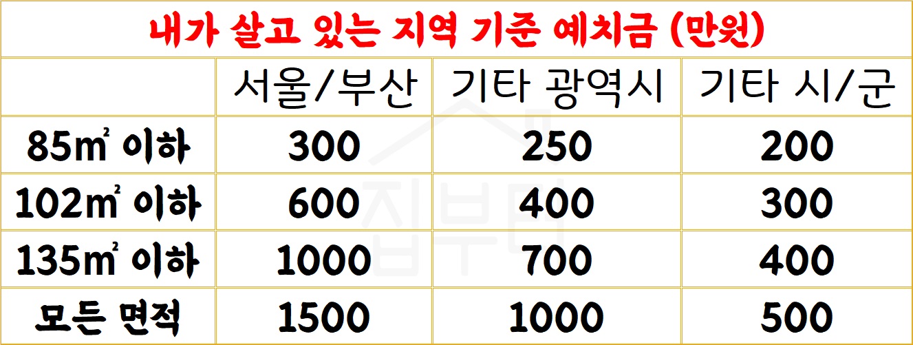 공통적으로 현재가 거주하는 지역의 지역별/면적별 예치금 이상의 금액이 저축되어 있어야 합니다.
