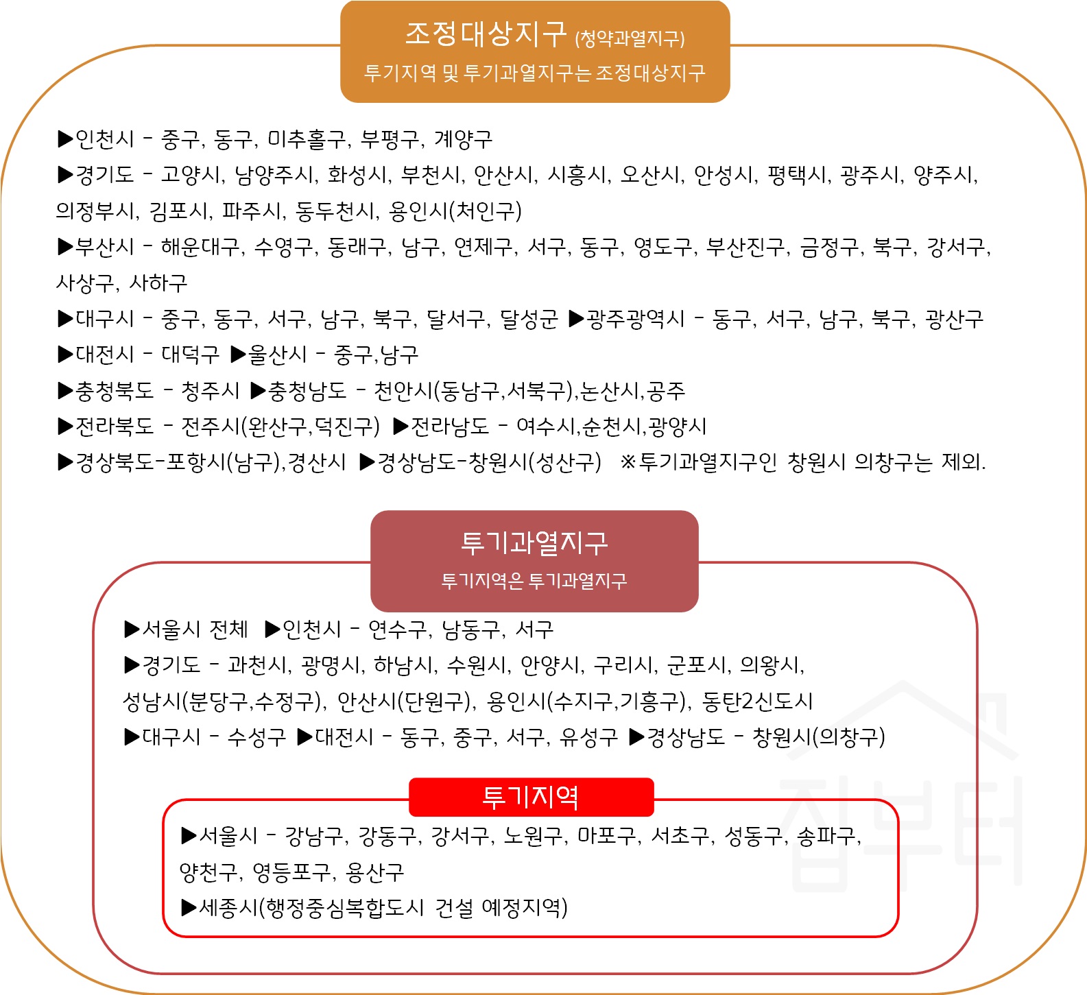 그림처럼 투기지역이면 투기과열지구이고, 투기과열지구는 조정대상지역에 포함된다고 이해하시면 됩니다.