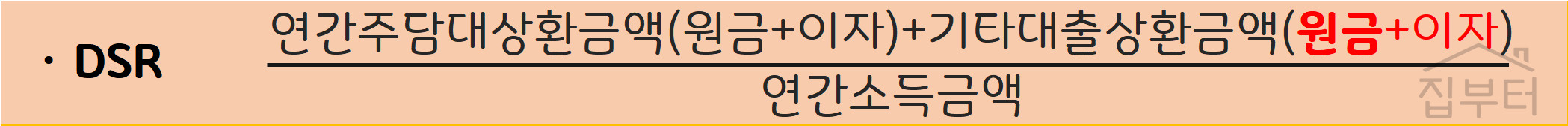 계산방법은 <연간주담대상환금액(원금+이자)+기타대출상환금액(원금+이자)/연소득금액>입니다.
