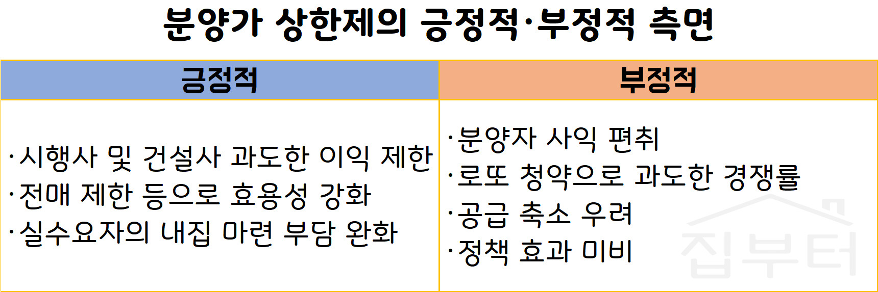 분양을 시행하는 시행사나 건설사의 과도한 이익을 제한할 수 있습니다. 이로 인해 청약 수요자들은 시세 대비 저렴한 분양가에 새 아파트를 입주할 수 있습니다. 또한 실거주 요건이나 전매 제한 등 추가 규제로 효용성 강화라는 긍정적인 면이 있습니다.