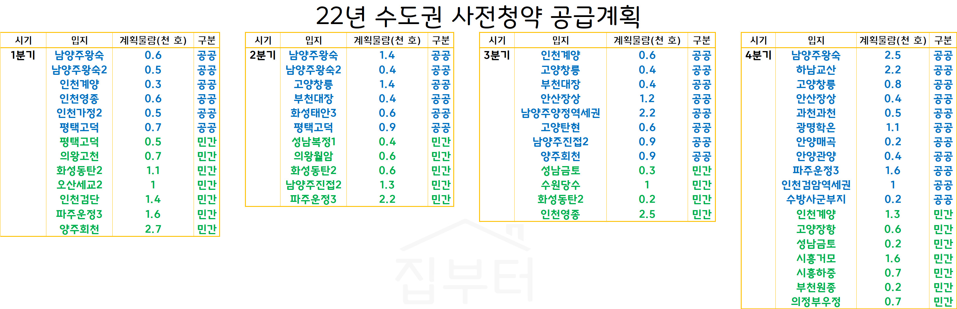 사전청약은 3기 신도시와 수도권 공공택지 내에 본청약 1~2년 전에 청약을 진행하는 제도입니다. 최근 2030의 부동산 패닉바잉 등 부동산 시장이 굉장히 혼란스러웠는데, 사전청약제도를 통해 불안한 심리를 진정시키고 본청약의 경쟁률을 낮추려는 정부의 도입배경이 있었습니다. 22년에는 21년 대비 2배 이상 공급될 예정입니다. 연신내역, 방학역, 쌍문역, 신길2 등 도심공공주택 복합사업 내에서도 사전청약 공급을 하여 서울·수도권 도심 내에서도 최초로 공급을 계획하고 있습니다.