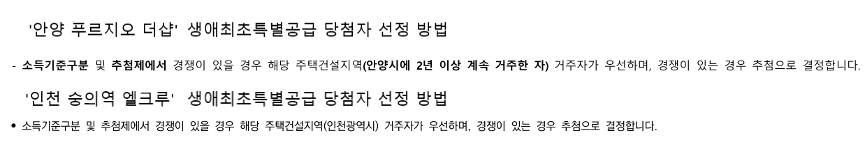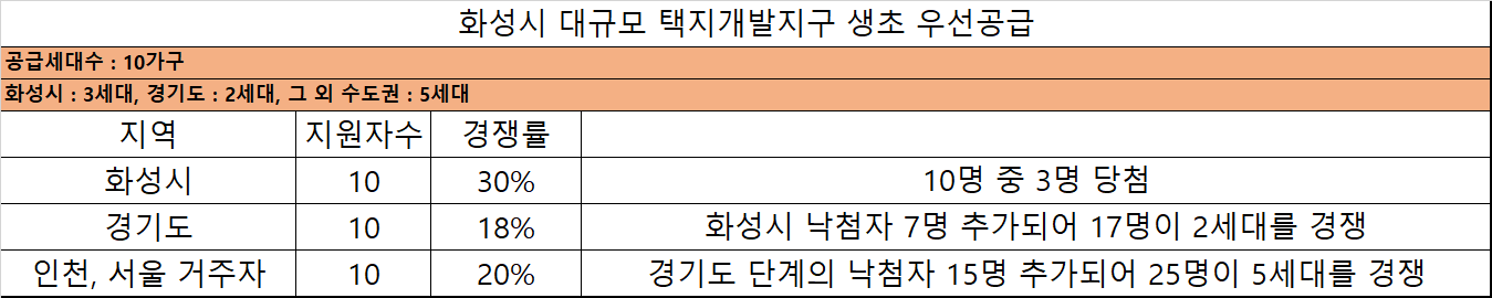 예를 들어 화성시 대규모 택지개발지구의 생애최초 특별공급의 경우를 보겠습니다.