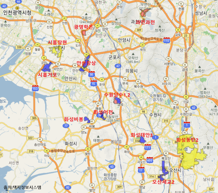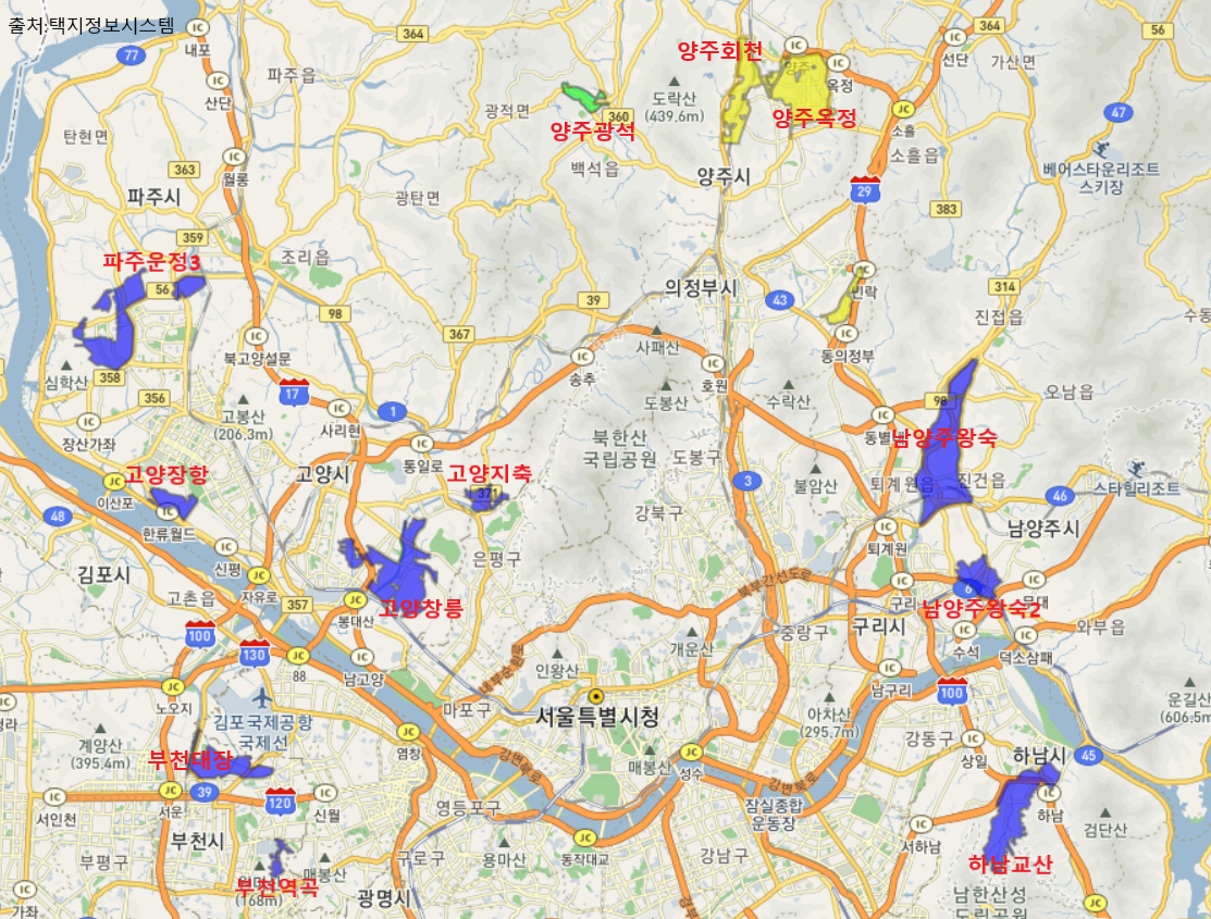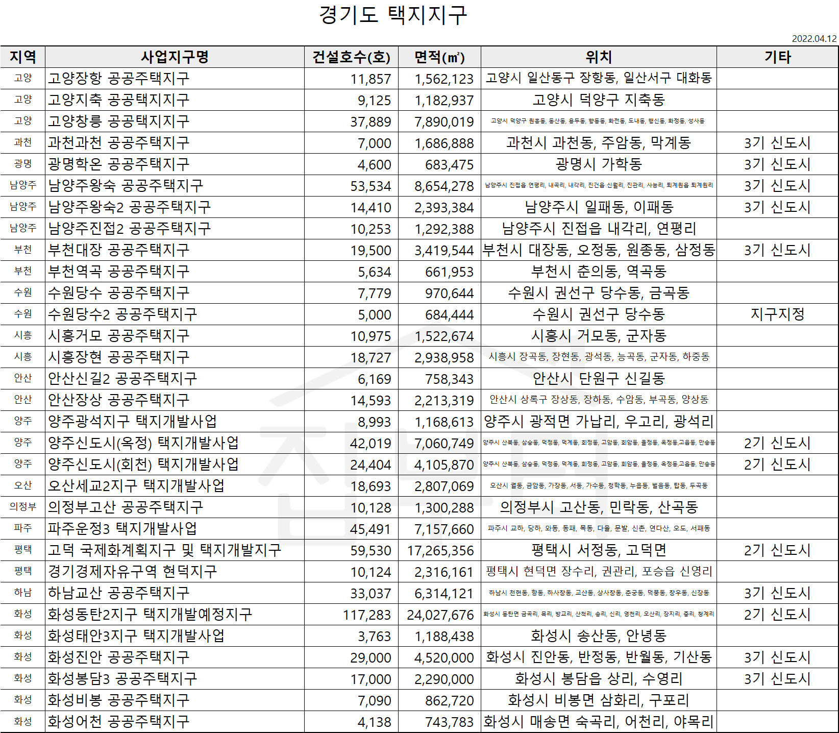 제 자료들도 택지정보시스템에서 정리를 하였는데, 3기 신도시 등 업데이트되지 않은 택지들도 있습니다. 이번에는 수도권 지역의 전체 택지지구들을 알아봤는데 앞으로 택지지구별로 하나씩 자세한 포스팅을 해보겠습니다.