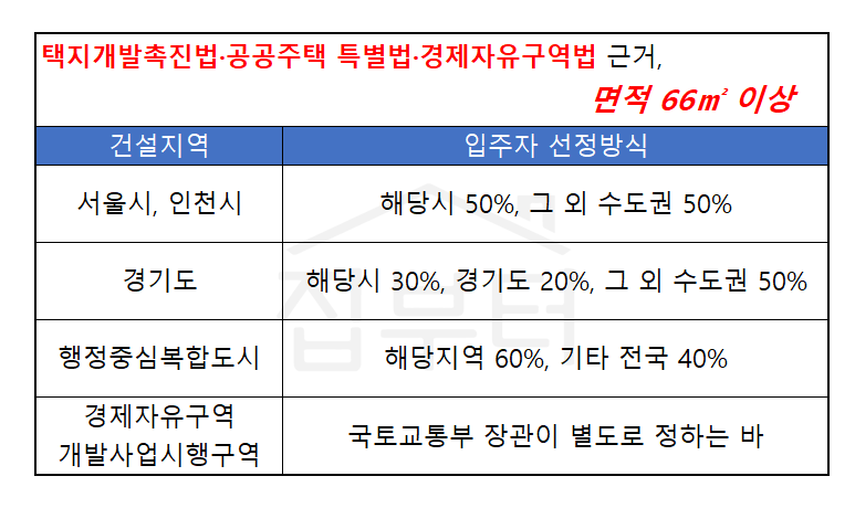 서울시·인천시에서 건설될 경우, 해당지역 거주자 50% 공급, 그 외 수도권 지역 50% 공급