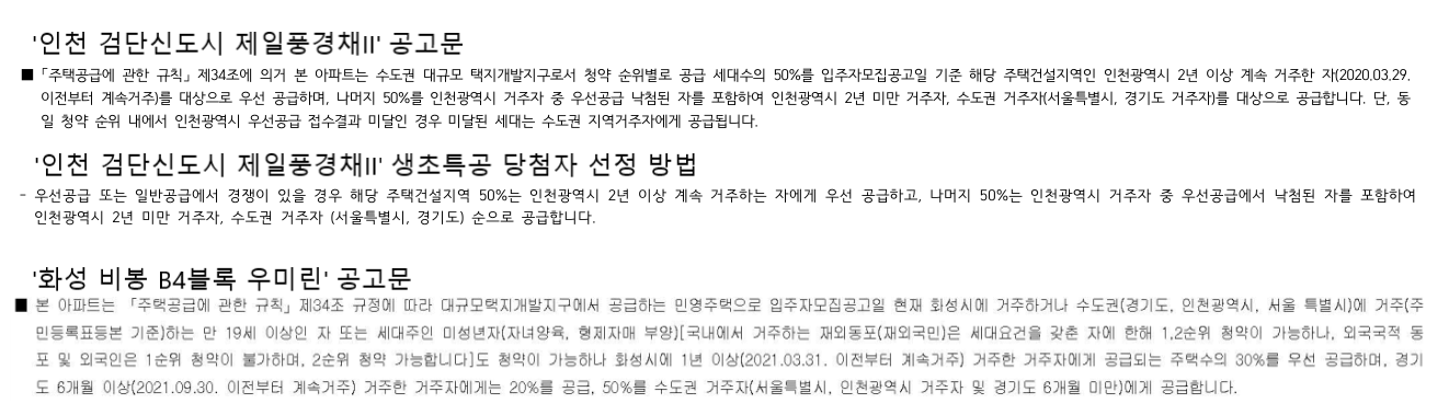 모든 청약의 기준과 정답은 모집공고문에 있습니다. 일반 분양하는 곳과 대규모 택지지구의 공고문을 비교해보겠습니다.