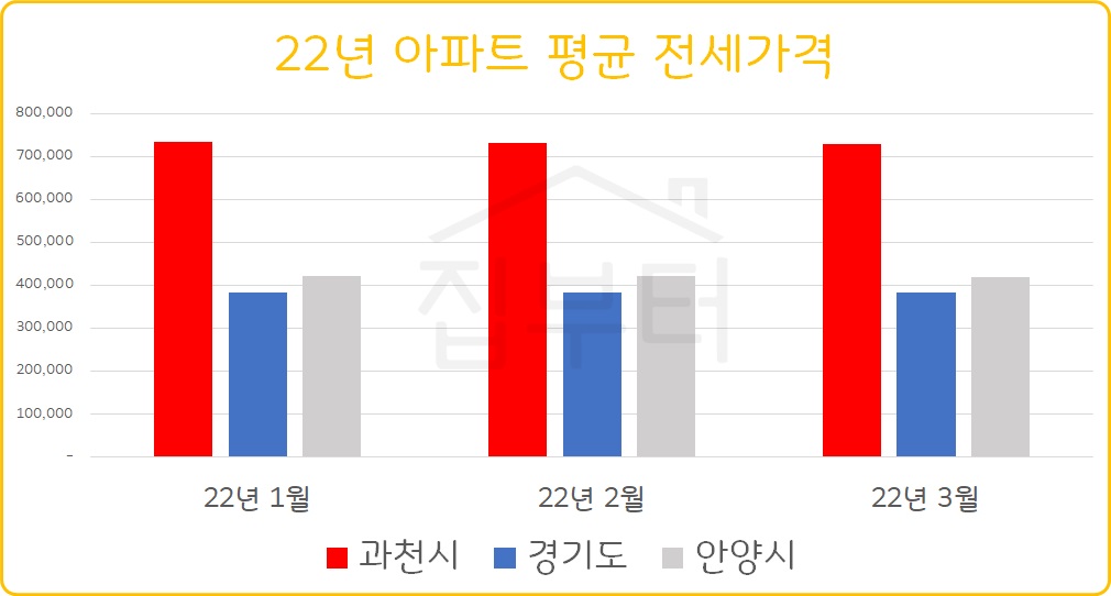 22년 과천, 경기도, 안양의 아파트 평균 전세 가격입니다. 경기도나 안양에 비해 굉장히 높은 금액입니다. 전세가 부담스럽다면 당연히 월세를 고민해보시면 됩니다. 월세도 타지역에 비해 높은 가격에 형성되있지만 과천으로 가겠다하시는 분들은 상황에 맞게 선택하시면 되겠습니다.
