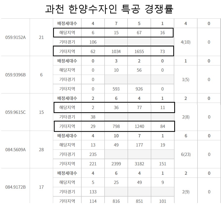 한양수자인 특별공급도 무주택자만 청약이 가능했는데, 과천거주자 당해 물량만 있었습니다. 아직 과천에도 무주택 유지를 하며 분양을 기다리시는 분들이 많습니다. 하지만 기타지역의 접수현황을 보면 기타지역 거주자들은 해당 경쟁률을 보고 과천 거주자들을 굉장히 부러워했을겁니다.